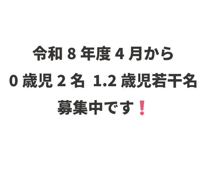 令和8年度4月🌸0歳クラス2名、1.2歳ク